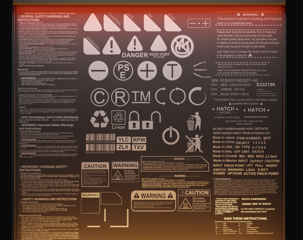 These Decals are made to used for smaller scale tech detail in hardsurface models to provide an extra touch of detail, these are a variety of warning texts, symbols & Text info.